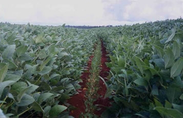 Veja ilustração abaixo, onde parte da plantação não recebeu fertilizante: